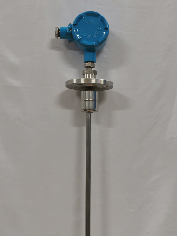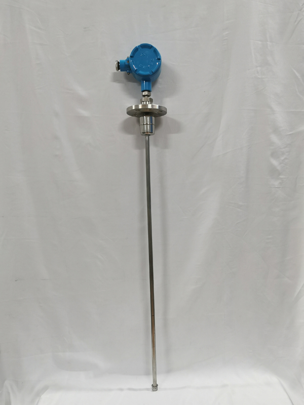 結構原理:液位變送器根據浮力原理和磁藕合工作原理。磁性浮子隨液位上下移動時,對應液位位置的干簧管受浮子內磁場的作用吸合,電阻鏈陽值發生變化經芯片轉換成4-20Ma標準電流信號輸出。(可按用戶需求帶HART協議)